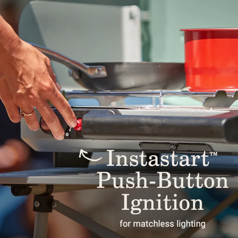 Level up your food game with the Cascade™ Collection. Perfect for those times when trail mix just won’t cut it, the Cascade 328 3-Burner Camping Stove makes it easy to cook great meals outdoors. Its durable, built-in carry handle makes it portable so you can bring it to the campsite or park. Unexpected rough weather? This stove has two guards to shield the burners and flame from the wind and Even-Temp™ burners that radiate heat equally across the 3 adjustable burners.