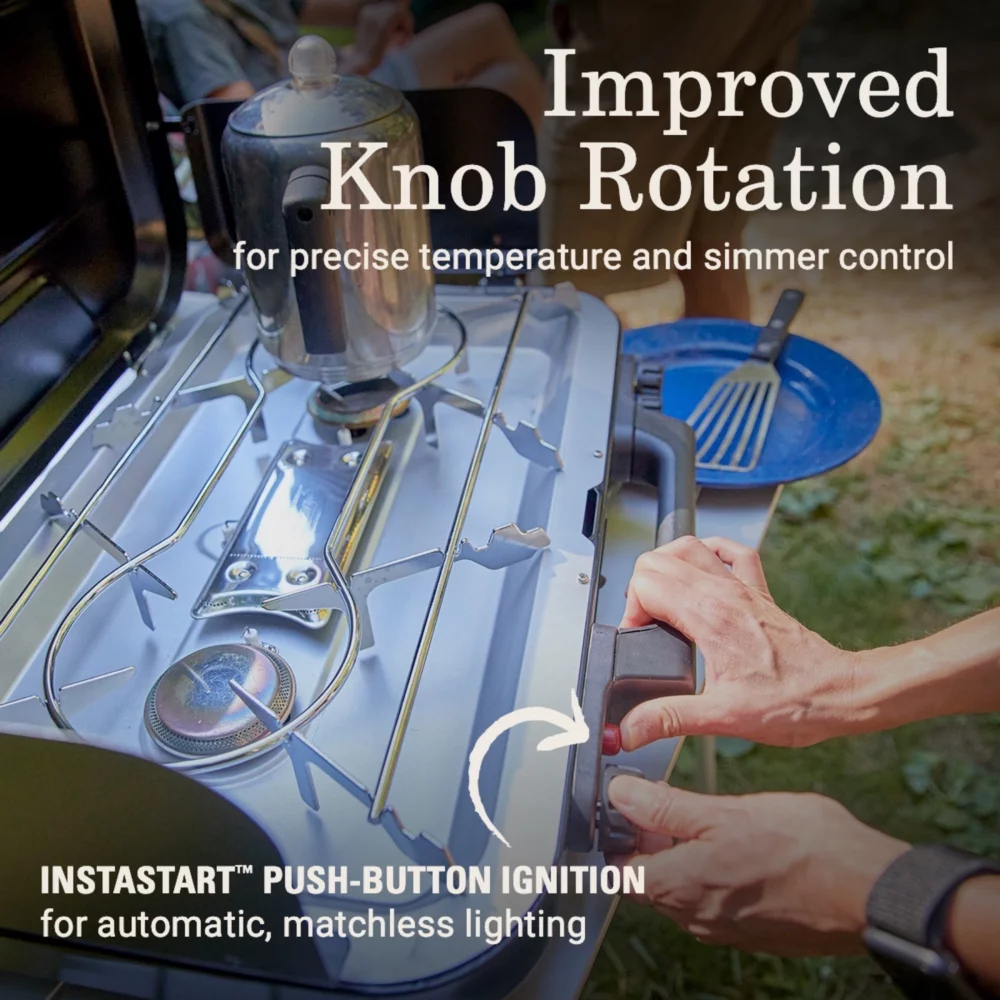 Hit the road with a Classic 3-Burner Camping Stove which makes it easy to cook great meals outdoors. Its built-in carry handle makes the stove easy to move between the trunk and the campsite. Ready to head home? The removable chrome-plated grate makes cleanup quick.