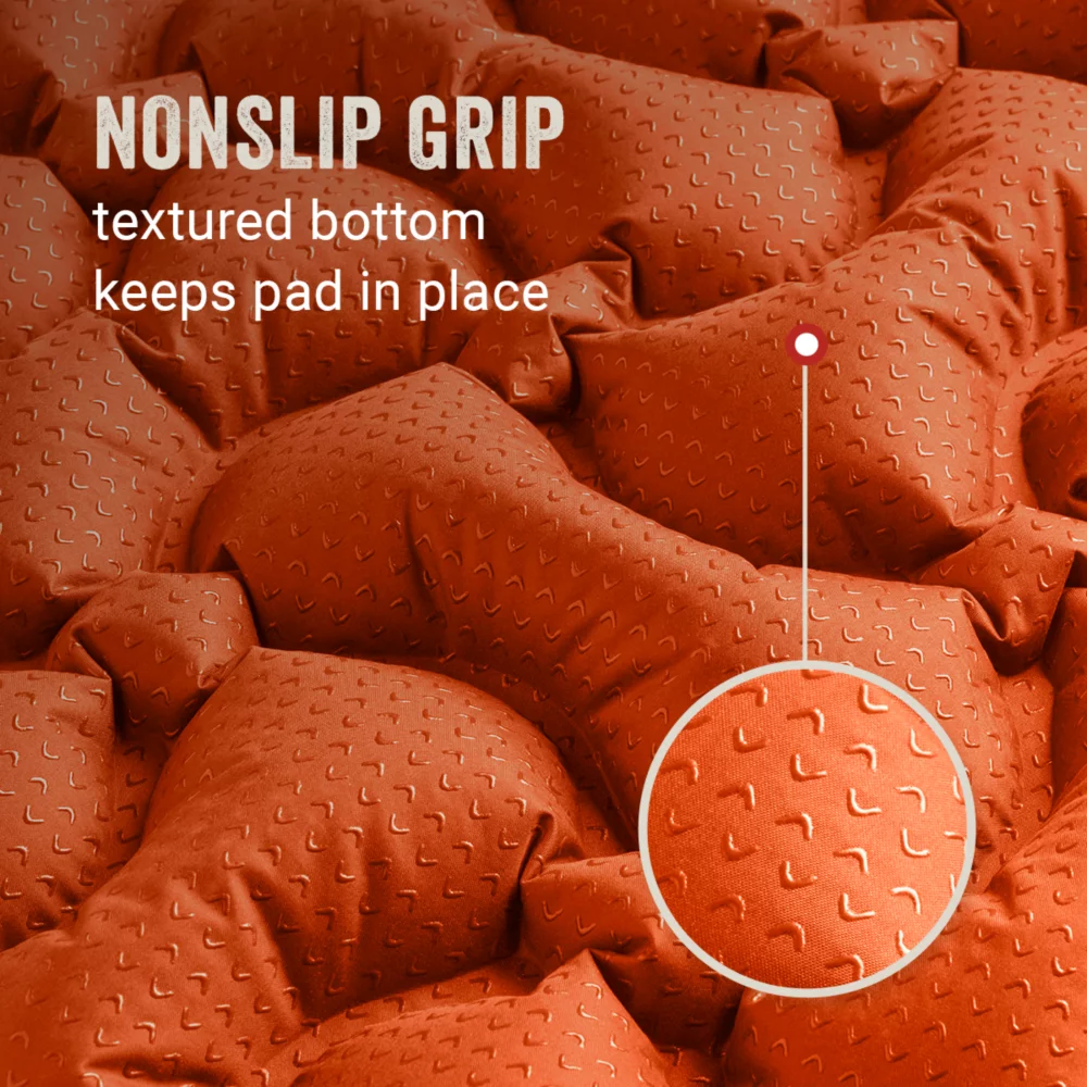 - No-slip grip and textured bottom keeps camp pad in place