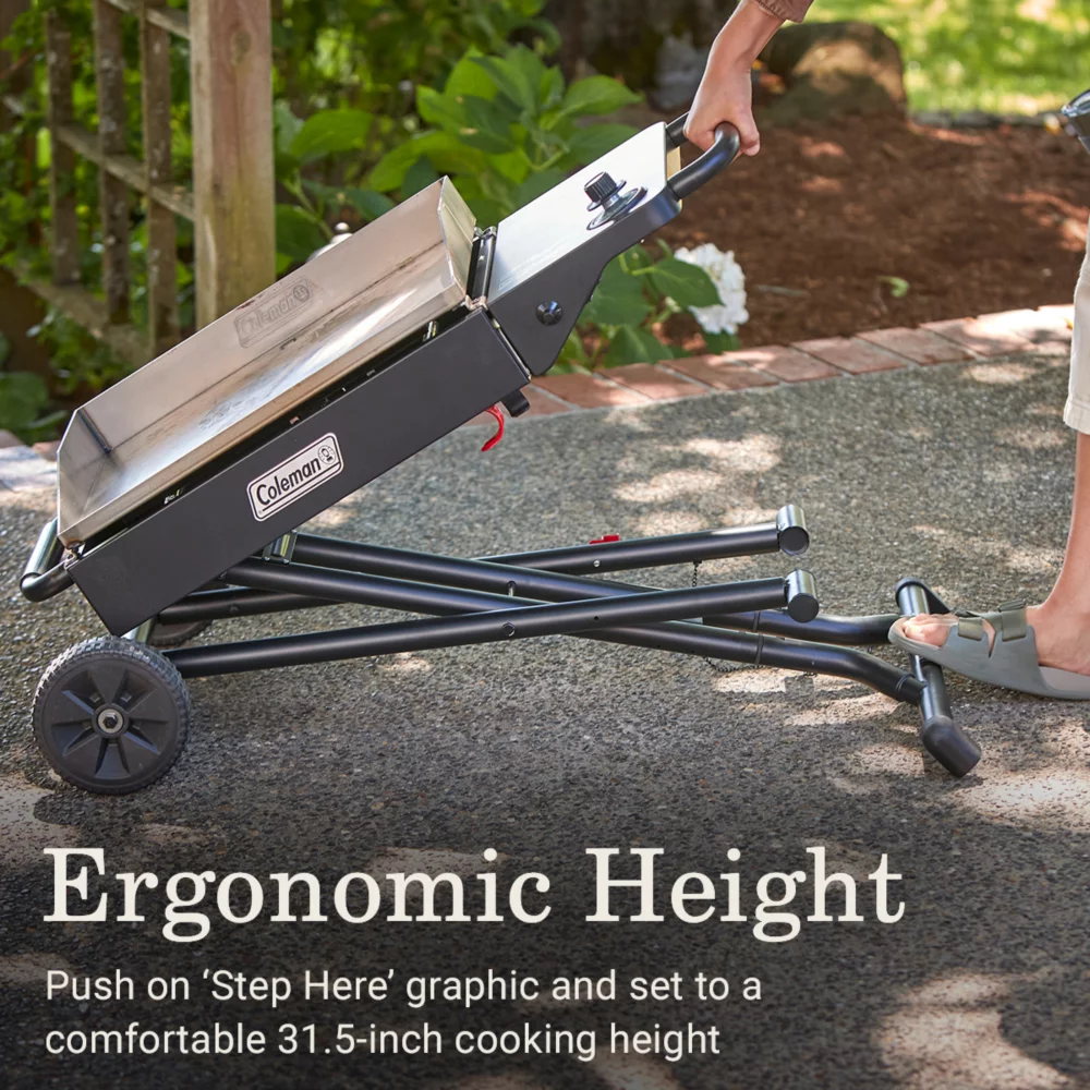 Get cooking with the RoadTrip™ Collection, designed for maximum portability and easy cleaning for all your campouts and backyard barbecues. The Coleman RoadTrip Griddle features a smooth 19-inch cooking surface with 14,000 BTUs of power. Its collapsible steel scissor legs fold down to fit in your trunk or store in your garage. The smooth cooking surface cooks up to 10 burgers at once and cleans easily. Plus, get superior grilling performance with heat distribution over 85% of the cooking surface.