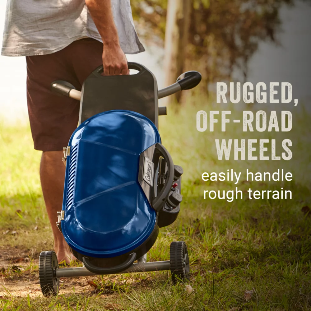 Rule the campground, park, or the parking lot when you fire up your Coleman® RoadTrip® X-cursion™ Propane Grill. This portable grill with collapsible steel scissor legs and a low-profile design make moving it around as easy as flipping a burger, while the rugged, off-road wheels handle almost any terrain. Once you’re at your grill site, 285 sq. in. of porcelain-coated, cast iron grills are waiting for anything you can throw at them. Just hit the Instastart™ push-button ignition and dial in your heat with the two independently adjustable burners. Turn up the heat with 20,000 BTUs of grilling power that delivers it consistently across the grill surface thanks to the Even-Temp™ burners. If you’re looking for more meal options, the Swaptop™ interchangeable cooktops let you change out one of the grill grates with a griddle or stove grate (both sold separately). When it’s time to head home, the DripTrap™ removable water pan catches all the grease for easy cleaning before you go. Fold this grill up and it will store out of the way until you head out to your next summer cookout.